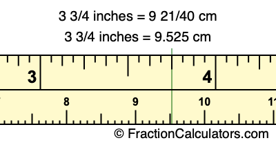 Centimeters is usually given in decimal form, so we have also converted the fractional answer to 3 3/4 inches to cm, to decimal form: