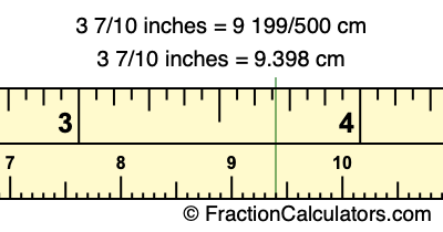 Centimeters is usually given in decimal form, so we have also converted the fractional answer to 3 7/10 inches to cm, to decimal form: