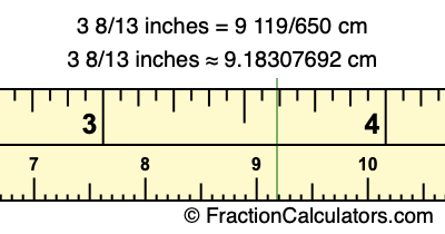 Centimeters is usually given in decimal form, so we have also converted the fractional answer to 3 8/13 inches to cm, to decimal form: