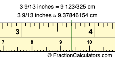 Here is how to convert 3 9/13 inches to cm. We will give you the fractional answer, the decimal answer, and illustrate the answer on our tape measure.