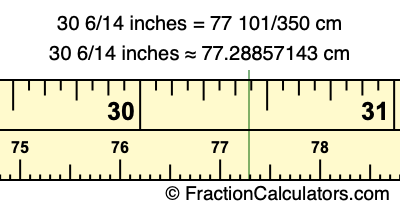 Centimeters is usually given in decimal form, so we have also converted the fractional answer to 30 6/14 inches to cm, to decimal form: