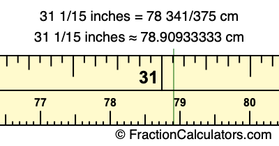 Centimeters is usually given in decimal form, so we have also converted the fractional answer to 31 1/15 inches to cm, to decimal form: