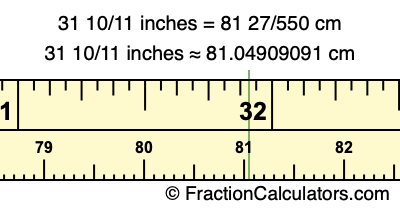 31 10/11 inches = 81 27/550 cm