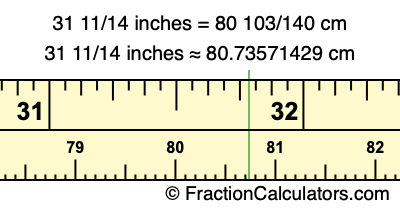 31 11/14 inches ≈ 80.73571429 cm