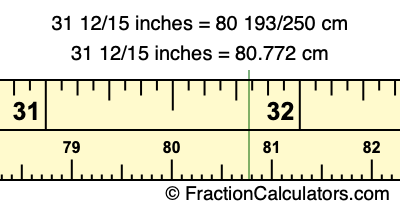 Centimeters is usually given in decimal form, so we have also converted the fractional answer to 31 12/15 inches to cm, to decimal form: