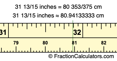 31 13/15 inches ≈ 80.94133333 cm
