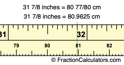 Centimeters is usually given in decimal form, so we have also converted the fractional answer to 31 7/8 inches to cm, to decimal form: