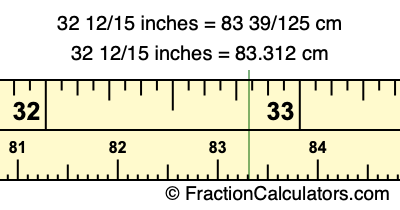 Centimeters is usually given in decimal form, so we have also converted the fractional answer to 32 12/15 inches to cm, to decimal form: