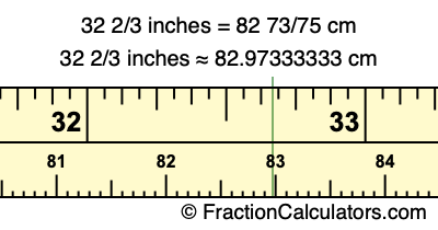 Centimeters is usually given in decimal form, so we have also converted the fractional answer to 32 2/3 inches to cm, to decimal form: