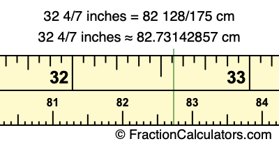 32 4/7 inches = 82 128/175 cm