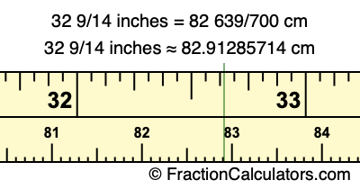 One inch is equal to 127/50 centimeters. Therefore, to get the fractional answer to 32 9/14 inches to cm, we multiply 32 9/14 inches by 127/50 and simplify if necessary.