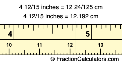 Centimeters is usually given in decimal form, so we have also converted the fractional answer to 4 12/15 inches to cm, to decimal form:
