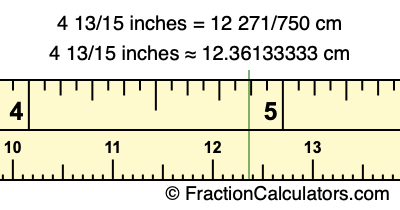 Centimeters is usually given in decimal form, so we have also converted the fractional answer to 4 13/15 inches to cm, to decimal form: