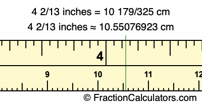4 2/13 inches = 10 179/325 cm