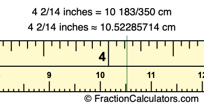 4 2/14 inches = 10 183/350 cm