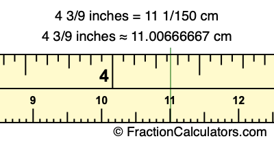 Centimeters is usually given in decimal form, so we have also converted the fractional answer to 4 3/9 inches to cm, to decimal form: