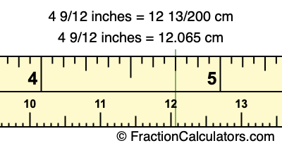 Here is how to convert 4 9/12 inches to cm. We will give you the fractional answer, the decimal answer, and illustrate the answer on our tape measure.
