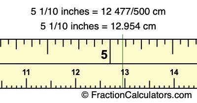 5 1/10 inches = 12 477/500 cm