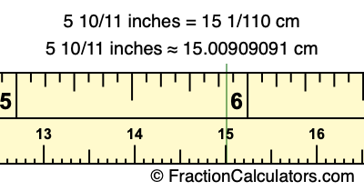 5 10/11 inches = 15 1/110 cm