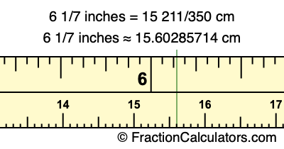 Here is how to convert 6 1/7 inches to cm. We will give you the fractional answer, the decimal answer, and illustrate the answer on our tape measure.