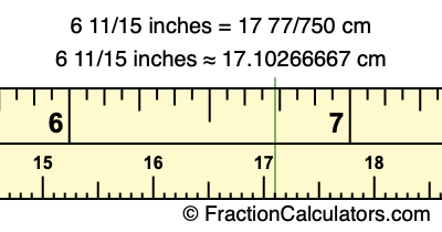 Centimeters is usually given in decimal form, so we have also converted the fractional answer to 6 11/15 inches to cm, to decimal form: