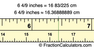Here is how to convert 6 4/9 inches to cm. We will give you the fractional answer, the decimal answer, and illustrate the answer on our tape measure.