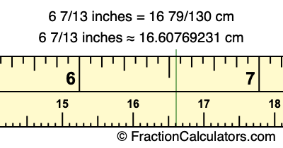 Centimeters is usually given in decimal form, so we have also converted the fractional answer to 6 7/13 inches to cm, to decimal form: