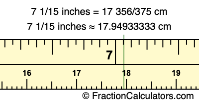 Centimeters is usually given in decimal form, so we have also converted the fractional answer to 7 1/15 inches to cm, to decimal form: