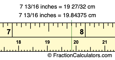 Centimeters is usually given in decimal form, so we have also converted the fractional answer to 7 13/16 inches to cm, to decimal form: