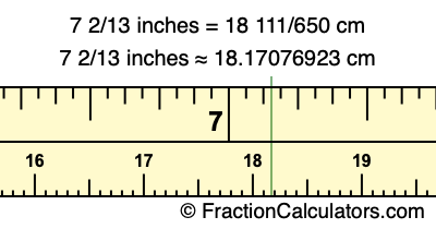 7 2/13 inches = 18 111/650 cm