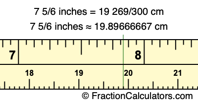 Centimeters is usually given in decimal form, so we have also converted the fractional answer to 7 5/6 inches to cm, to decimal form: