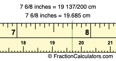 Centimeters is usually given in decimal form, so we have also converted the fractional answer to 7 6/8 inches to cm, to decimal form: