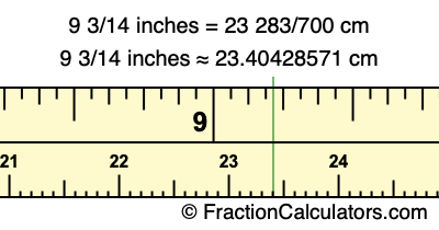 9 3/14 inches ≈ 23.40428571 cm