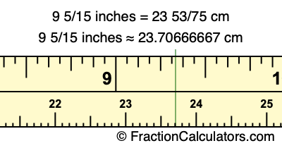 Centimeters is usually given in decimal form, so we have also converted the fractional answer to 9 5/15 inches to cm, to decimal form: