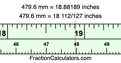 One millimeter is equal to 5/127 inches, and 479.6 as a fraction is 2398/5. Therefore, to get the fractional answer to 479.6 mm in inches, we multiply 2398/5 by 5/127 and simplify if necessary.