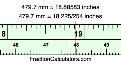 Here is how to convert 479.7 mm to inches. We will give you the fractional answer, the decimal answer, and illustrate the answer on our tape measure.