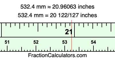 Here is how to convert 532.4 mm to inches. We will give you the fractional answer, the decimal answer, and illustrate the answer on our tape measure.