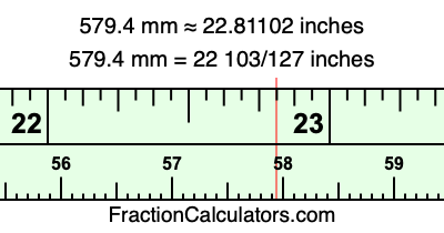 Here is how to convert 579.4 mm to inches. We will give you the fractional answer, the decimal answer, and illustrate the answer on our tape measure.