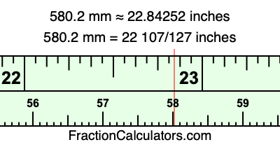 Here is how to convert 580.2 mm to inches. We will give you the fractional answer, the decimal answer, and illustrate the answer on our tape measure.