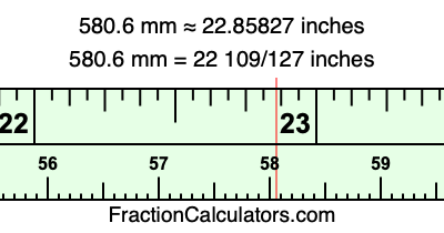 Here is how to convert 580.6 mm to inches. We will give you the fractional answer, the decimal answer, and illustrate the answer on our tape measure.