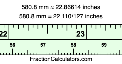 Here is how to convert 580.8 mm to inches. We will give you the fractional answer, the decimal answer, and illustrate the answer on our tape measure.