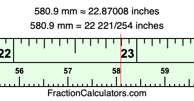 Here is how to convert 580.9 mm to inches. We will give you the fractional answer, the decimal answer, and illustrate the answer on our tape measure.