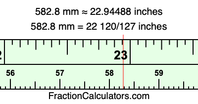 Here is how to convert 582.8 mm to inches. We will give you the fractional answer, the decimal answer, and illustrate the answer on our tape measure.