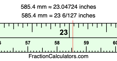 One millimeter is equal to 5/127 inches, and 585.4 as a fraction is 2927/5. Therefore, to get the fractional answer to 585.4 mm in inches, we multiply 2927/5 by 5/127 and simplify if necessary.