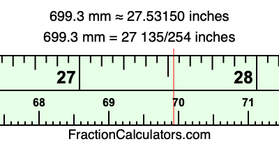 Here is how to convert 699.3 mm to inches. We will give you the fractional answer, the decimal answer, and illustrate the answer on our tape measure.