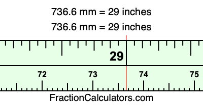 Here is how to convert 736.6 mm to inches. We will give you the fractional answer, the decimal answer, and illustrate the answer on our tape measure.