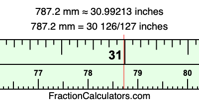 One millimeter is equal to 5/127 inches, and 787.2 as a fraction is 3936/5. Therefore, to get the fractional answer to 787.2 mm in inches, we multiply 3936/5 by 5/127 and simplify if necessary.