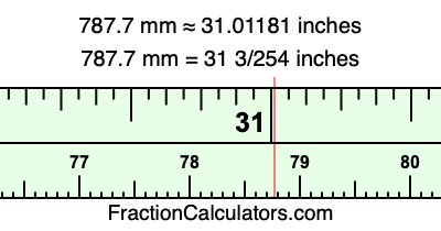 One millimeter is equal to 5/127 inches, and 787.7 as a fraction is 7877/10. Therefore, to get the fractional answer to 787.7 mm in inches, we multiply 7877/10 by 5/127 and simplify if necessary.
