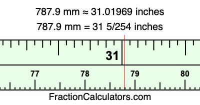One millimeter is equal to 5/127 inches, and 787.9 as a fraction is 7879/10. Therefore, to get the fractional answer to 787.9 mm in inches, we multiply 7879/10 by 5/127 and simplify if necessary.