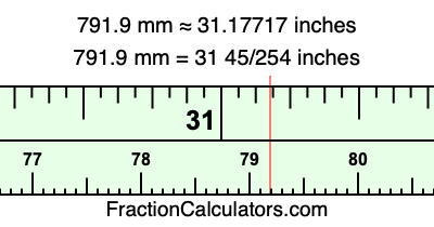 As promised above, we also have the answer to 791.9 mm in inches in decimal form. Although the fractional answer above is exact, the decimal answer may be rounded if necessary: